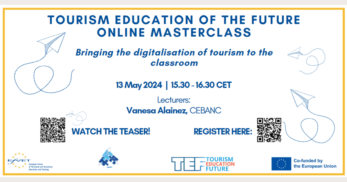he Masterclass will draw attention to share with you how we bring the digitalisation of tourism to the classroom. During the Masterclass the students and the teachers will talk us about their challenge  and will show you the best trends concerning the Digitalization of Tourism.