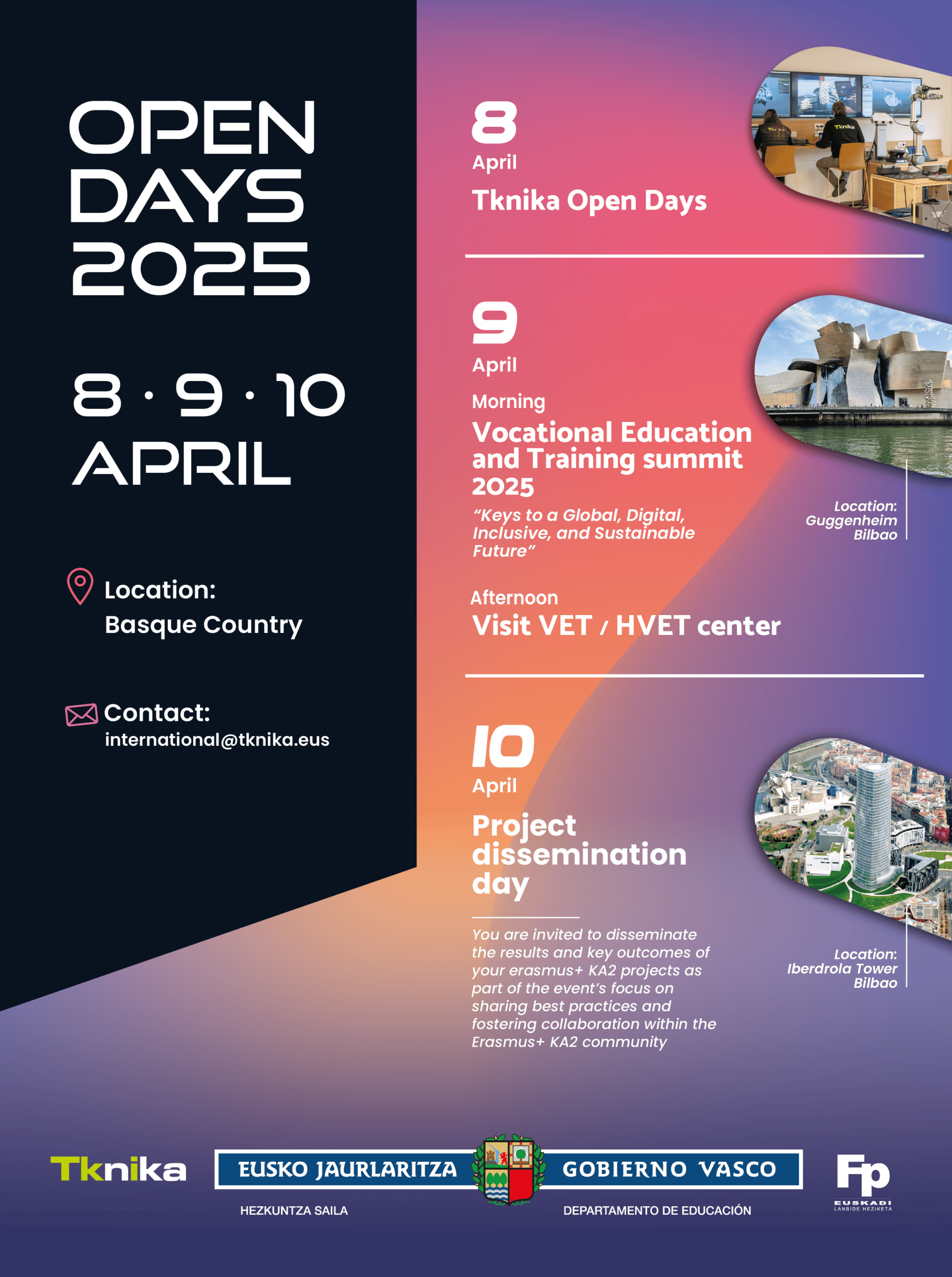 On April 10, the event will conclude with a European Projects dissemination day session at the Iberdrola Tower in Bilbao, where the best practices will be shared, fostering collaboration within the Erasmus+ KA2 community.