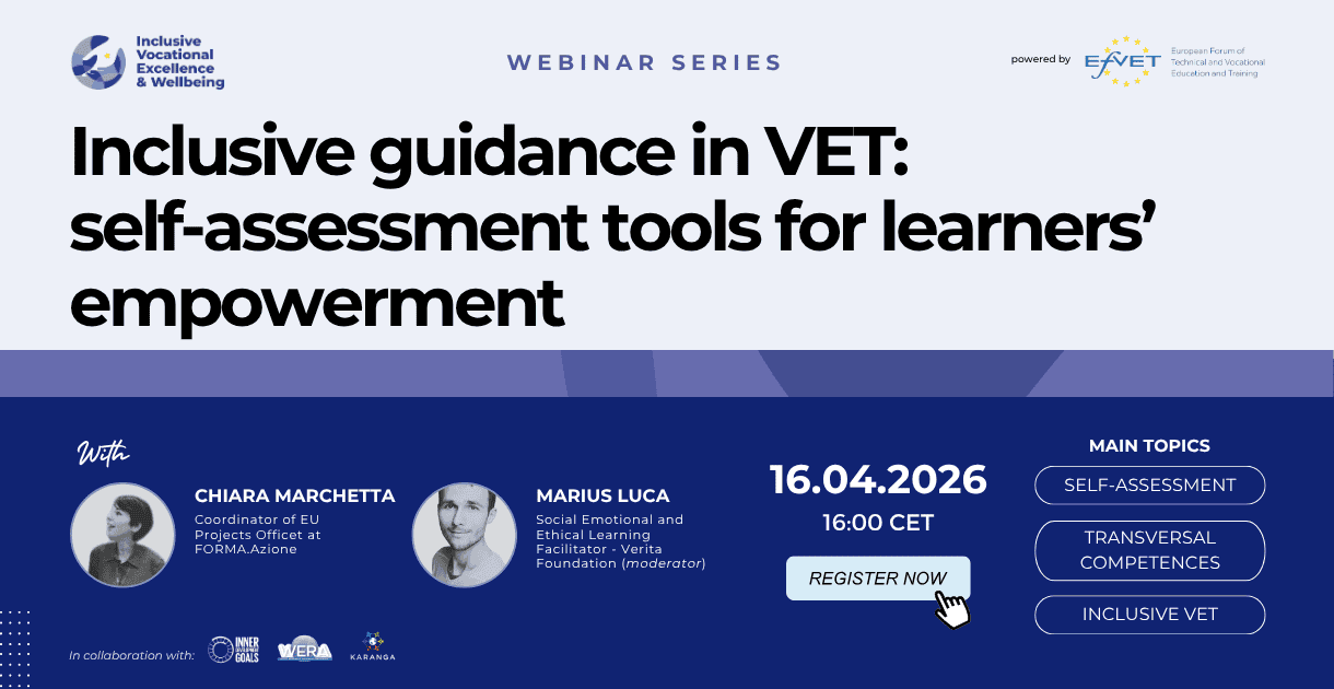16/04/2026 Online Inclusive guidance in VET: self-assessment tools for learners’ empowerment Learn more