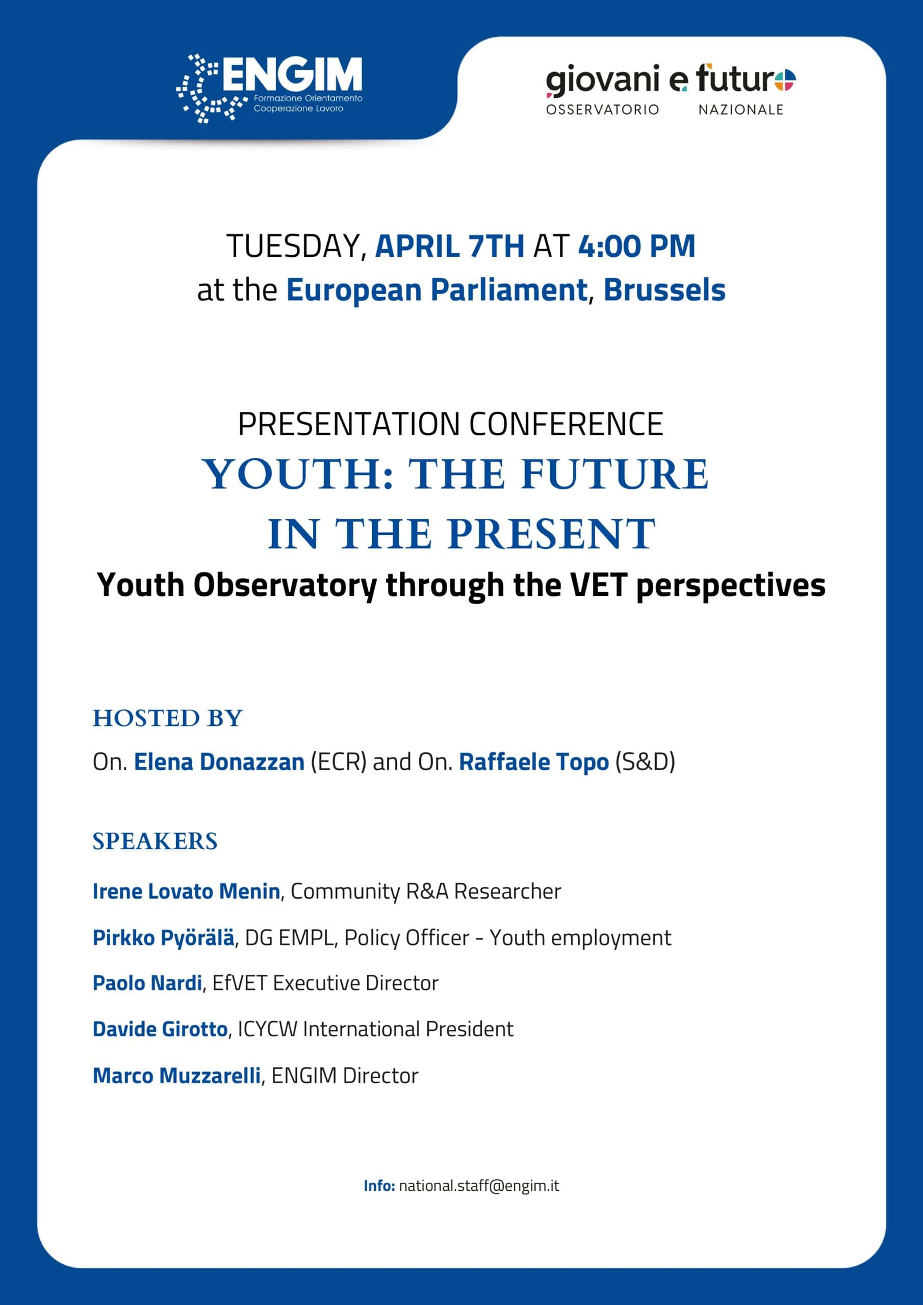 07/04/2026 Brussels, Belgium YOUTH: THE FUTURE IN THE PRESENT – Youth Observatory through the VET perspectives Learn more