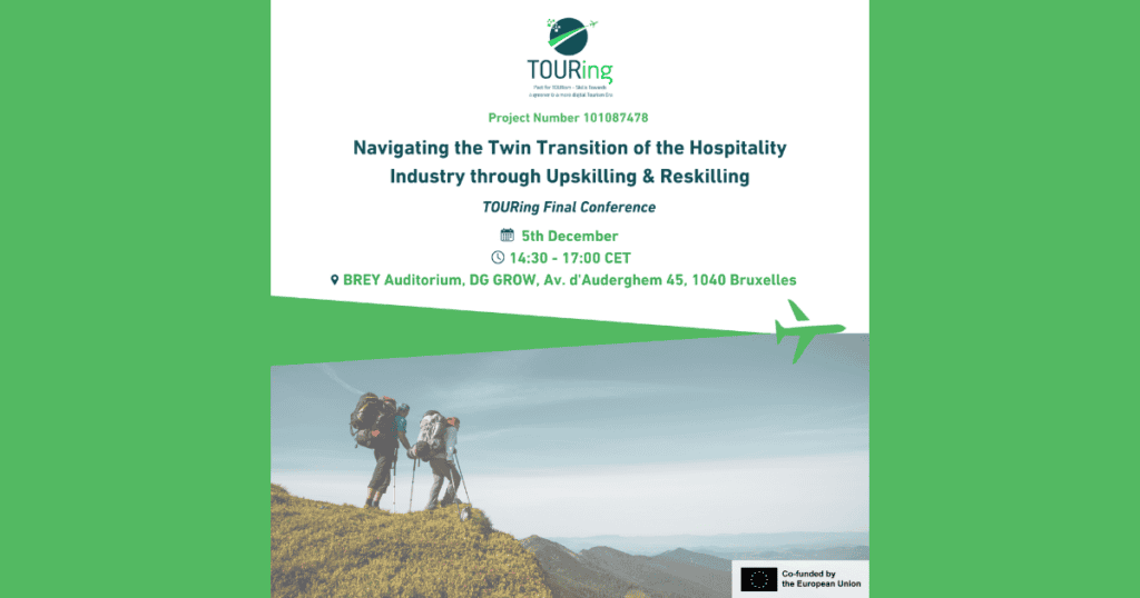 ✈️ Join us for the TOURing project Final Conference, “Navigating the Twin Transition of the Hospitality Industry through Upskilling & Reskilling,” where key discussions will address the latest EU tourism policies, regional skills partnerships, and upskilling strategies for SMEs in the tourism sector! — 5th December, 2024 14:00 – 17:00 (CET) BREY Auditorium, DG GROW, Av. d’Auderghem 45, […]