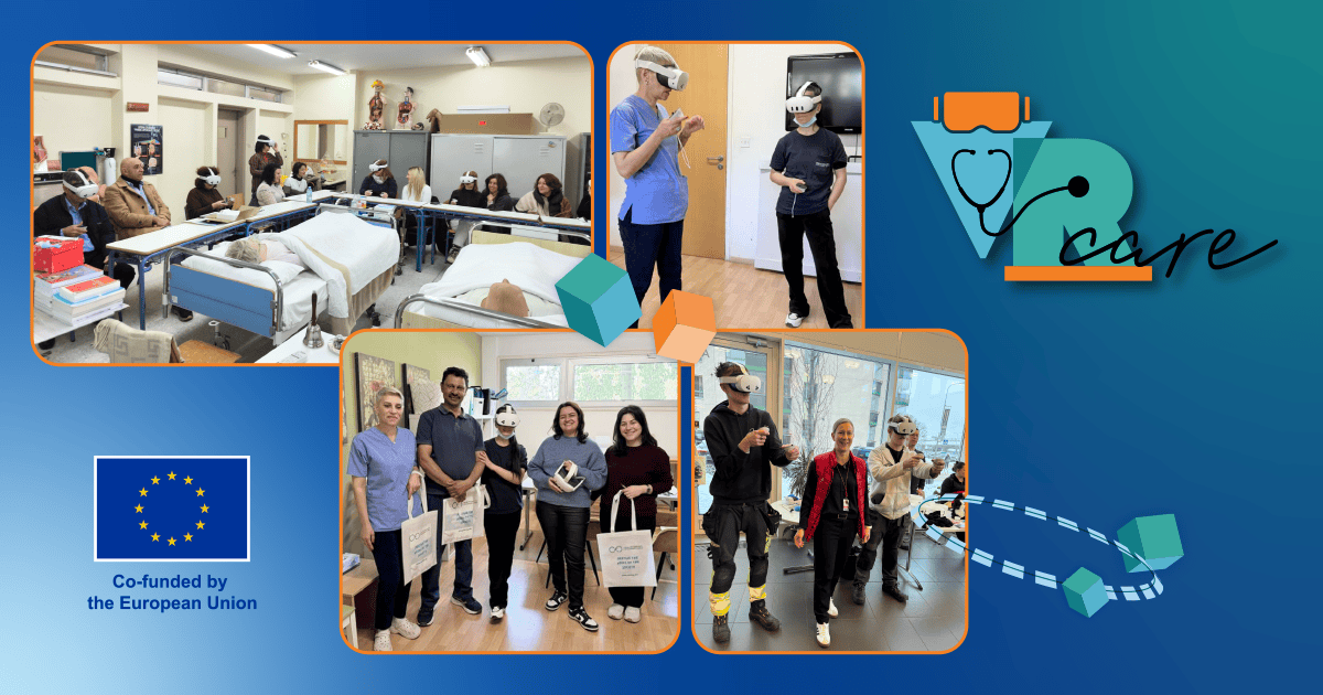 At the heart of this experience is VRCare, an Erasmus+ KA220 project co-funded by the European Union through the Finnish National Agency EDUFI. During the pilot phase, 235 participants from Finland, Denmark, Ireland, Spain, Greece, and Cyprus explored how virtual reality can support learning in childcare and elderly care. For many, this was their first experience using VR.